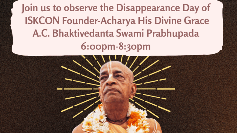 The Hare Krishna Temple warmly invites everyone to join us for a reflective evening as we observe the disappearance anniversary of Srila Prabhupada on Saturday, October 25th, at 6:00 p.m. On this sacred day, devotees all over the world gather to remember His Divine Grace A.C. Bhaktivedanta Swami Prabhupada, the beloved Founder-Acharya of the International Society for Krishna Consciousness (ISKCON), who …